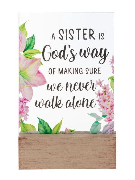 Illuminate the bond of sisterhood with the ‘A Sister Is God’s Way of Making Sure We Never Walk Alone’ Glass Block. This beautifully crafted piece serves as a reminder of the divine connection between sisters, providing comfort and companionship through life’s journey.