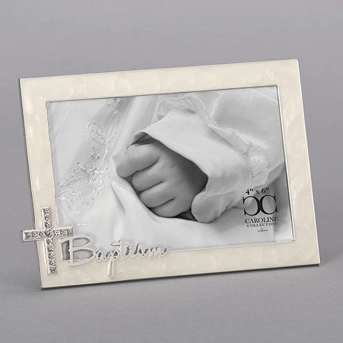 Baptsim Frame With Jeweled Cross Holds 4×6 Photo