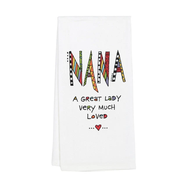Keep the kitchen tidy and bonds tight with this personalized tea towel made for Nana. Colorful embroidery creates a stylish statement and salutes her role in your life. A sweet message reads: “A great lady very much loved.”