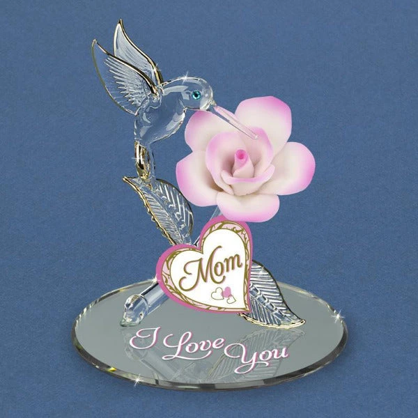 Celebrate your love for Mom, with this unique handcrafted hummingbird and porcelain rose figurine.
