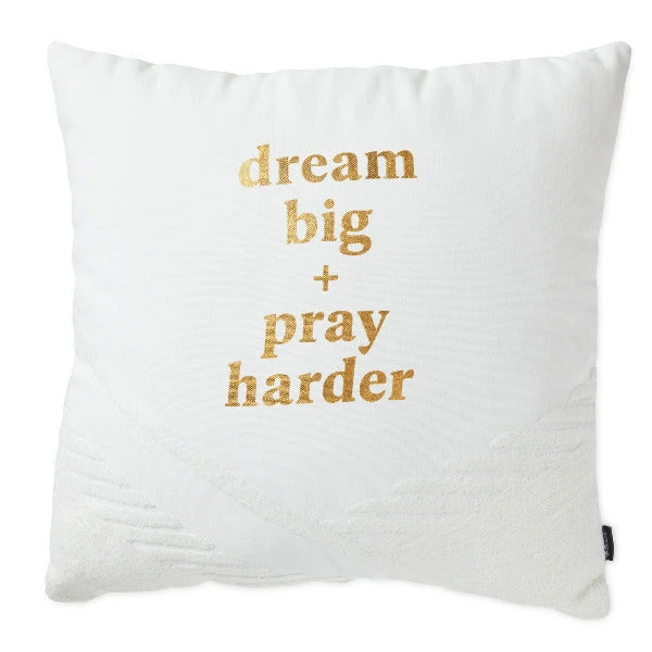 Add a touch of daily inspiration to your decor with this pretty throw pillow. A white-on-white embroidered design softly complements a thoughtful quote screenprinted in gold lettering. Admire the message from afar or pause in the comfort of the plush pillow and reflect on the devotional prayer booklet tucked in a pocket sewn on the back.