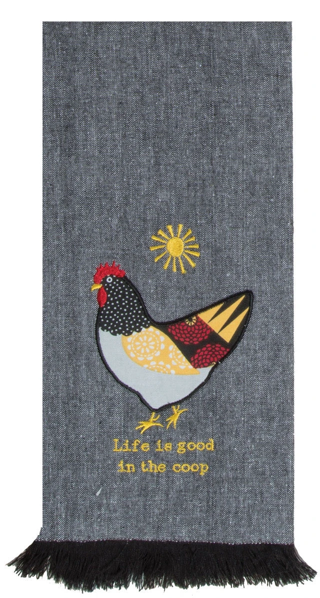 Life Is Good In The Coop Chicken Applique Tea Towel