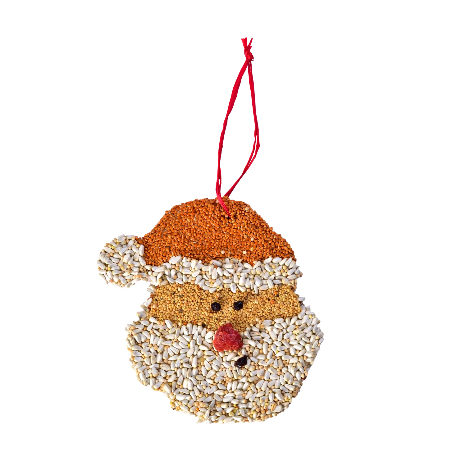 Wooden Christmas “cookies” coated in seed and treats. Have your birds been naughty or nice? Nice I’m sure so offer them a delightful Santa seed treat. Strawberry nose, blueberry eyes, and a raisin mouth.