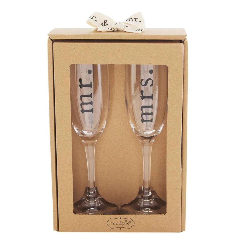Mud Pie Mr. & Mrs. Champagne Flutes Set Of 2