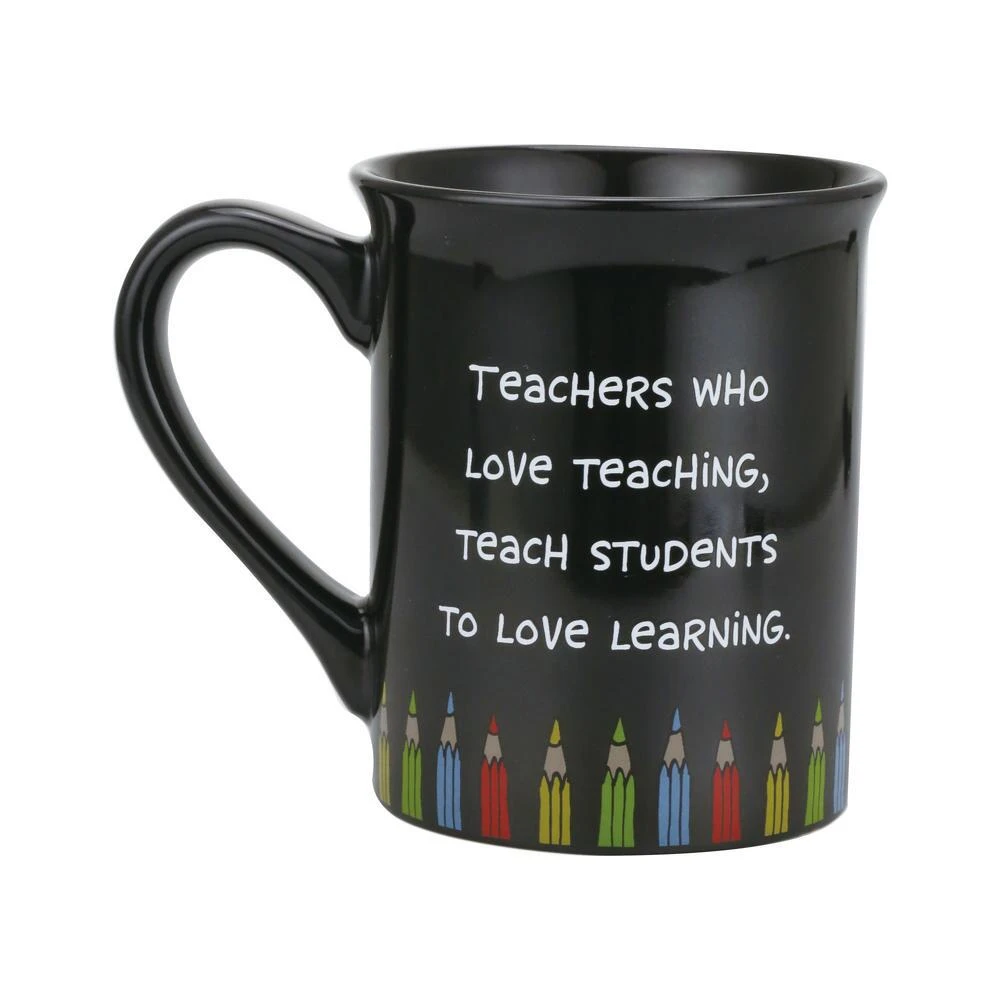 This special mug is reserved for the teachers that inspire. With a striking black background and colorful pencil detail, this mug celebrates the educators who spark creativity and passion. Teachers that love teaching teach students to love learning.