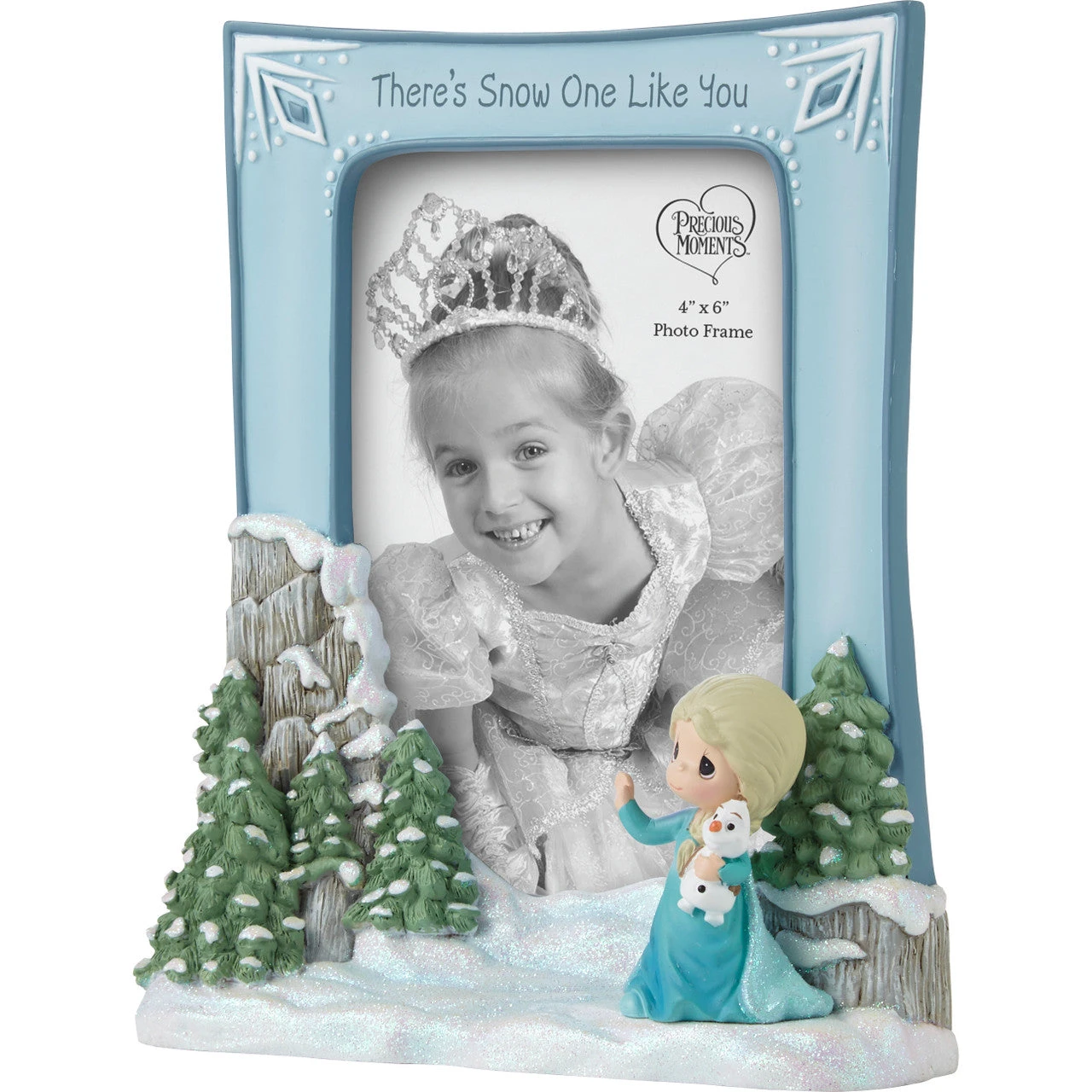 - A young Precious Moments girl dressed as the Disney’s Queen of Arendelle invites you to display a 4” x 6” photo of a sweet queen within this snow-covered frame.